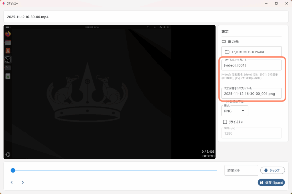 作業記録-[video]-[000]”作業記録-myvideo-034.png”の様にフォーマットしてくれます。