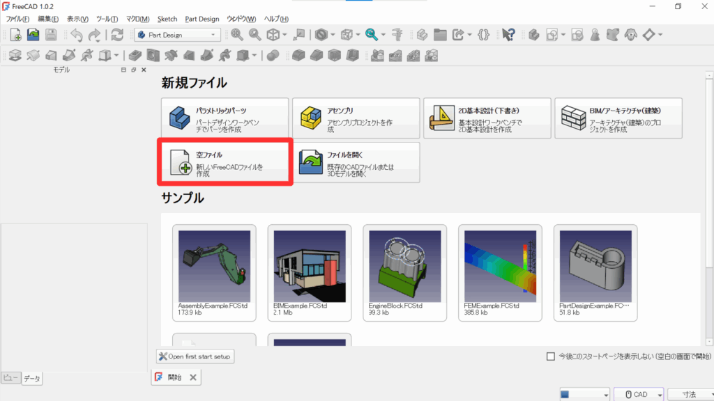 起動した画面から”空ファイル”を選択し、ファイルを作成してください。