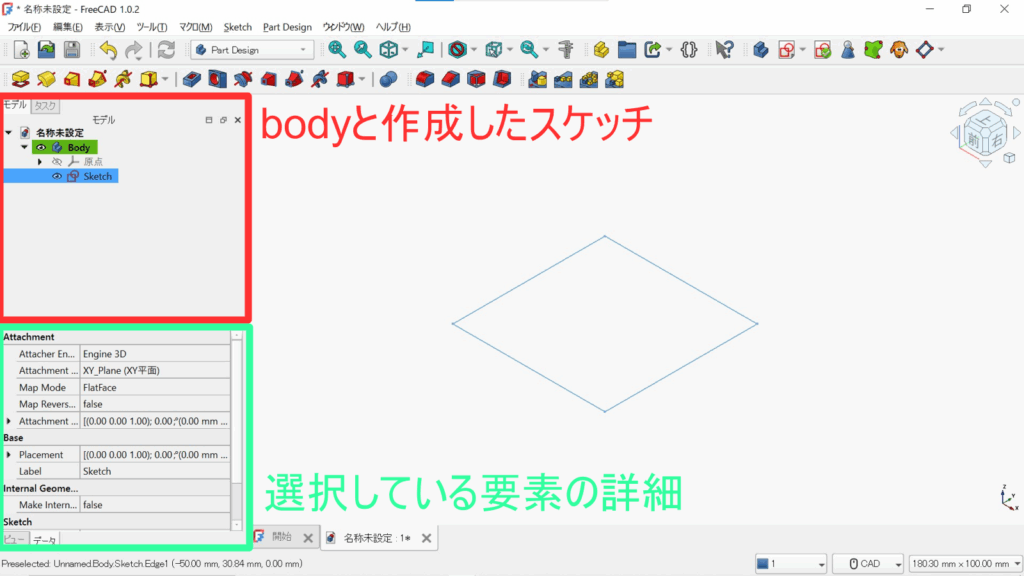 今回の記事では、初心者向けとして、できるだけ簡単に、スケッチからベースの形を作るところまでを操作画面を用いながら紹介します。
