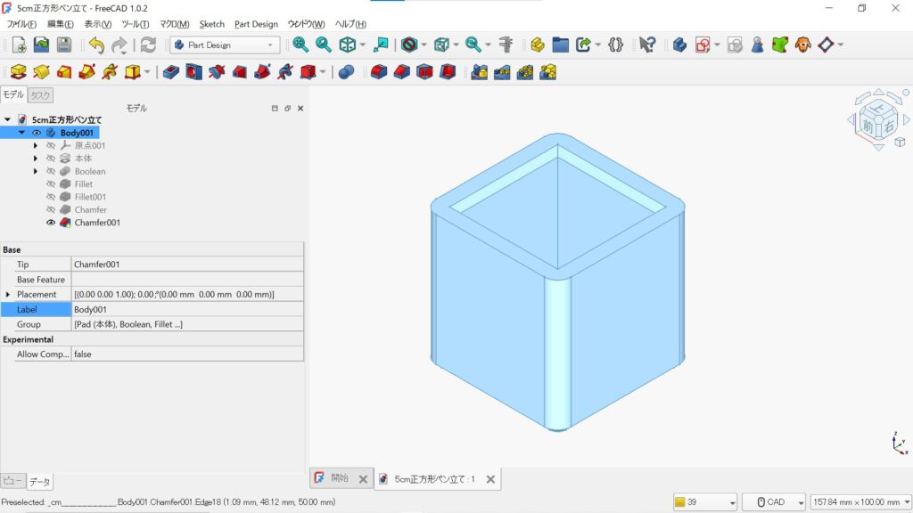 次の記事では、ペン立てのペンが入るところをブール演算を用いて作っていきます。