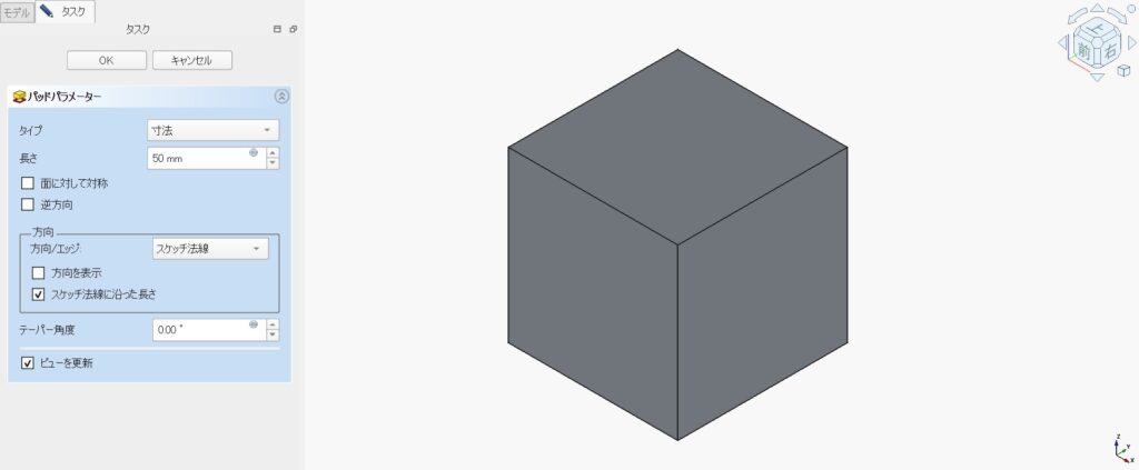 ここまでの操作で、立方体(ベース形状の柱)ができたはずです。