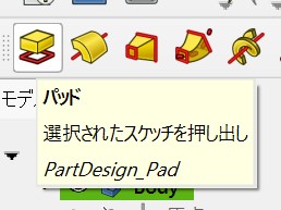1- スケッチを選択し、押し出し(パッド)をクリックする。