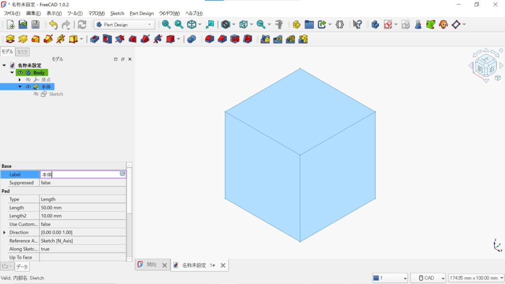 freeCADの最も基本的なモデリングの仕方は、スケッチを作成し、スケッチから面を作成、面を押し出すことで3dモデルを作る方法です。