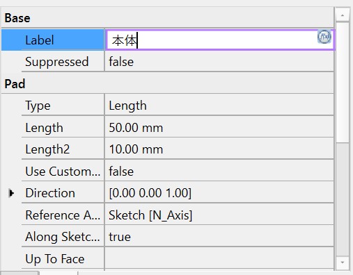 ここで、必須ではないですが、ラベルを変更して、これが何なのかわかりやすくしておくと、部品数が多くなったときなどに便利です。